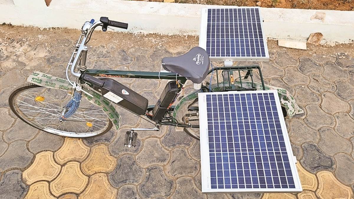 विद्यार्थियों ने बना दिया सोलर पैनल से चलने वाला साइकिल