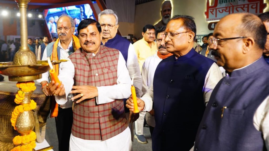 छत्तीसगढ़ राज्य स्थापना दिवस का आगाज़ 4 नवम्बर से शुरू हो चूका है और यह 6 नवम्बर तक चलेगा | इस राज्योत्सव का शुभारम्भ करने के लिए मध्यप्रदेश के मुख्यमंत्री डॉ. मोहन यादव का आमंत्रित किया गया था | इस अवसर पर आयोजित राज्योत्सव कार्यक्रम में मध्यप्रदेश के मुख्यमंत्री डॉ. मोहन यादव ने कहा कि डबल इंजन की सरकारें छत्तीसगढ़ और मध्यप्रदेश के विकास को तेजी से आगे बढ़ा रही हैं। उन्होंने छत्तीसगढ़ के मुख्यमंत्री श्री विष्णु देव साय की जनहित योजनाओं और माओवादी आतंक के खिलाफ अभियान की सराहना की, यह कहते हुए कि छत्तीसगढ़ से माओवाद समाप्ति की दिशा में बढ़ रहा है।